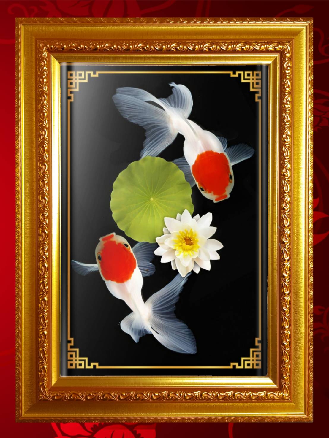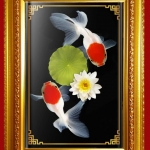 กรอบมงคลรูป ปลาทองคู่ เสริมฮ้วงจุ้ย / ตกแต่งบ้าน ขนาด 30.0*43.0 เซนติเมตร